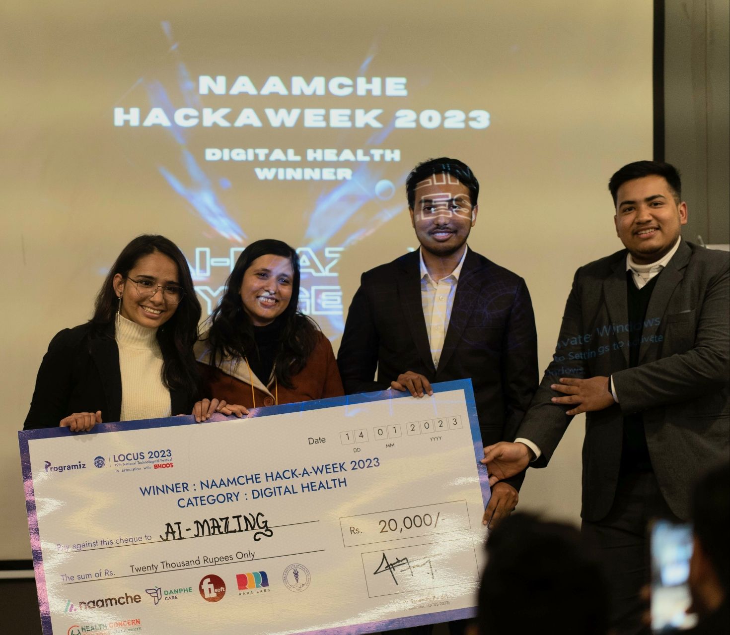 Won a week-long national-level hackathon under the digital health category — one of several national-level hackathon and code camp victories.